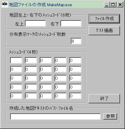 描こうとする地図は必ず6桁メッシュの枠を縦横同数にとることが必要です.その左上の6桁メッシュコードと右下の6桁メッシュコードをまず入力します.